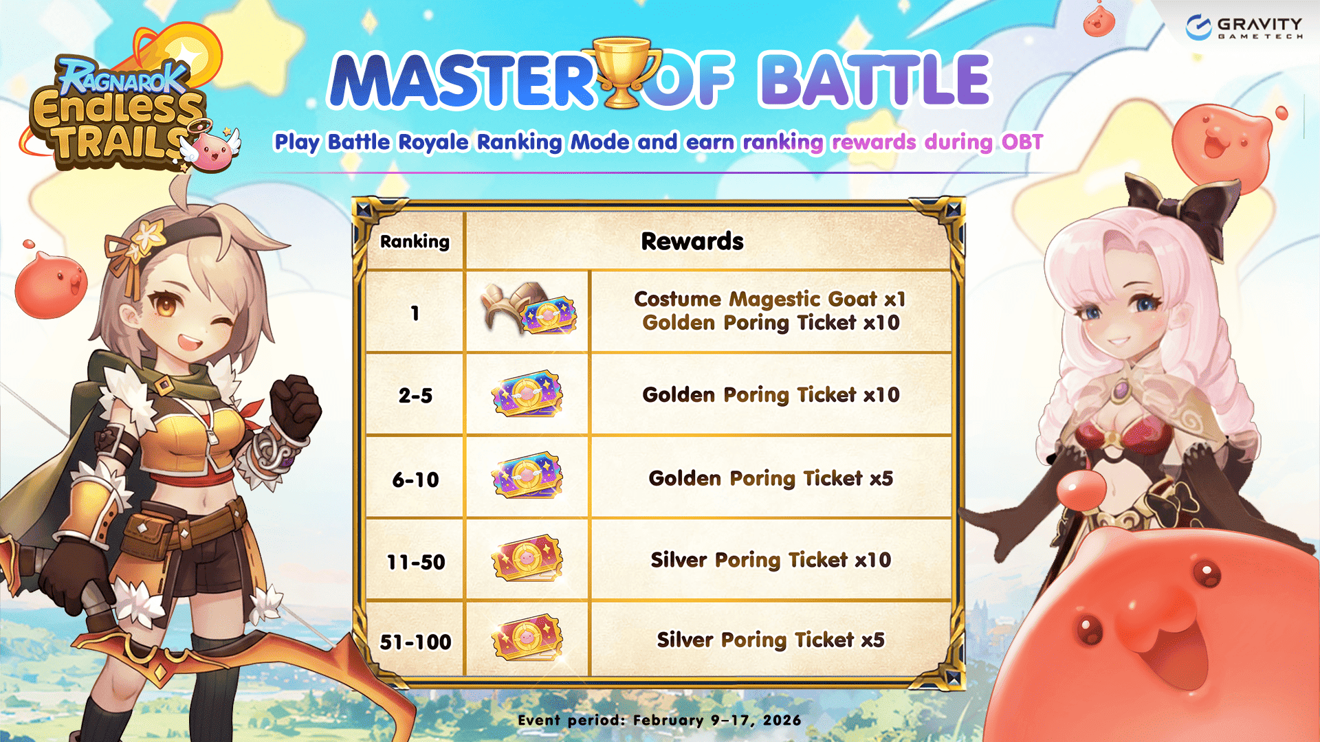 ยินดีต้อนรับนักผจญภัยทุกท่าน เข้าสู่ช่วง “Final CBT” หรือการทดสอบเกมครั้งสุดท้าย ของเกม “Ragnarok Endless Trails” เกมมือถือแนวตั้งในรูปแบบ Hybrid Roguelike จาก Gravity Game Tech ผสานการเล่น PVE แบบ Roguelike เข้ากับ PVP Battle Royale แบบเรียลไทม์ ที่ถูกสร้าง และพัฒนาโดยทีมงานสัญชาติไทย พร้อมให้บริการในทั่วภูมิภาคเอเชียตะวันออกเฉียงใต้ และข้อมูลทั้งหมดจากช่วง “Final CBT” จะถูกรีเซ็ต ก่อนจะเปิดให้บริการอย่างเป็นทางการในเร็ว ๆ นี้